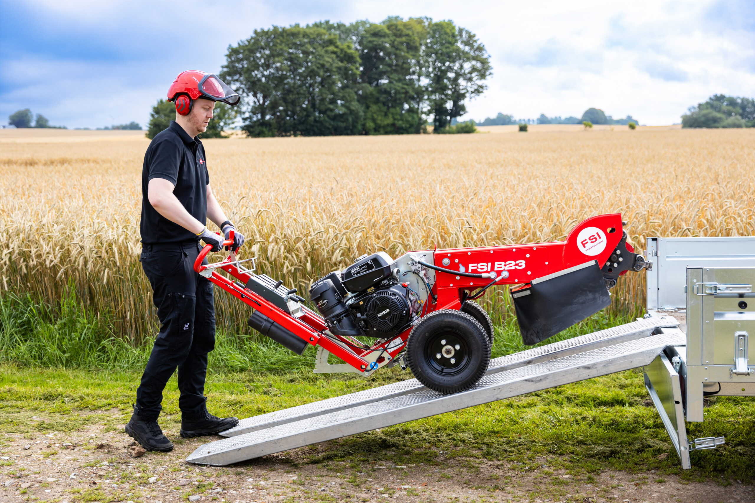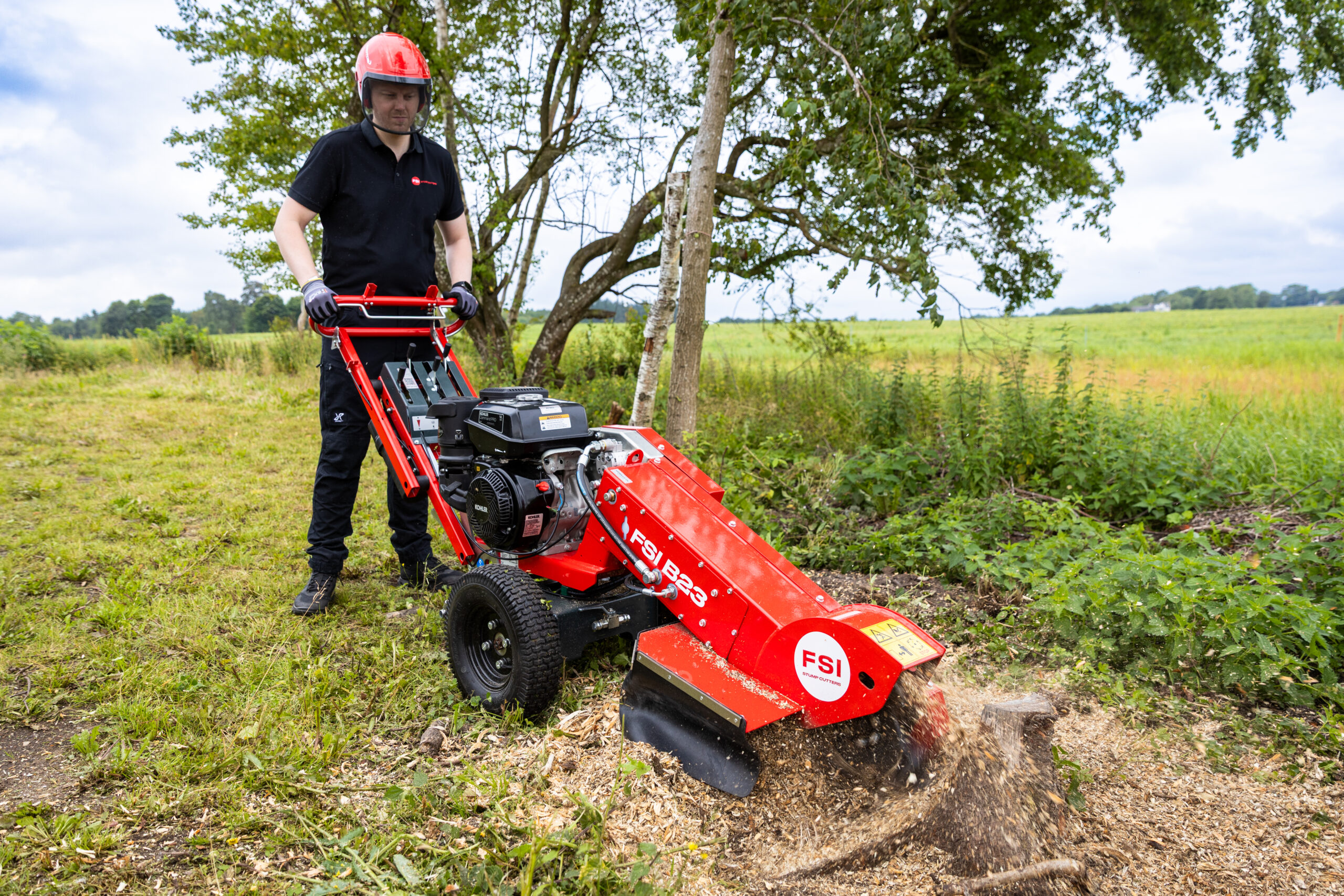 The FSI B23 is the successor to the popular FSI B22. With familiar design elements from both the FSI B21 and FSI B22, the B23 is the perfect partner for any professional task. The FSI B23 is a 14 hp self-propelled stump grinder, designed to make your work easier.It combines power with user-friendliness, making it easy to both maneuver and transport. The vibration-dampened and height-adjustable handle makes it less strenuous to swing the cutter arm from side to side.